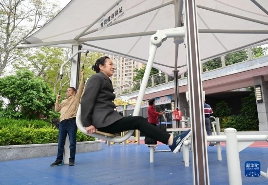 4月24日,市民在福州市鼓樓區(qū)西河智慧體育公園內(nèi)的健身驛站鍛煉。