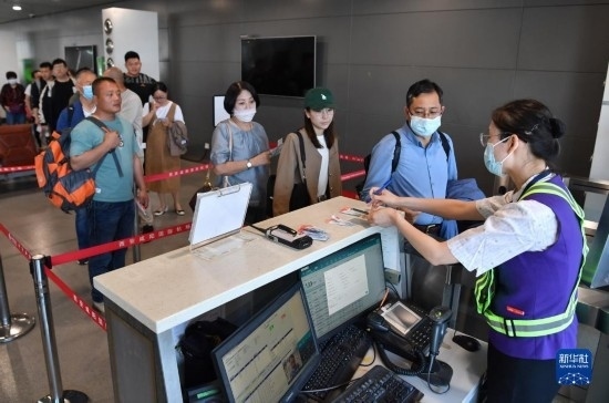 5月13日,乘坐西安-烏魯木齊-阿什哈巴德首趟航班的旅客準備登機。新華社記者 邵瑞 攝