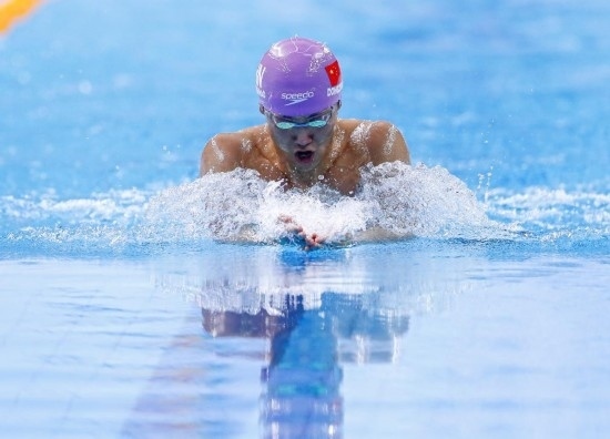 11月1日,南京市選手董志豪在比賽中,他獲得男子100米蛙泳公開組冠軍。當(dāng)日,第一屆全國學(xué)生(青年)運(yùn)動(dòng)會(huì)游泳項(xiàng)目比賽在廣西南寧開賽。新華社記者 胡星宇 攝