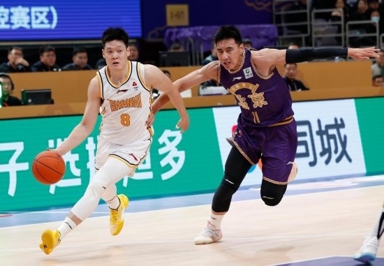 2022年3月1日,效力于新疆隊的曾令旭(右)在當(dāng)年的CBA比賽中帶球突破。新華社記者 盧漢欣 攝