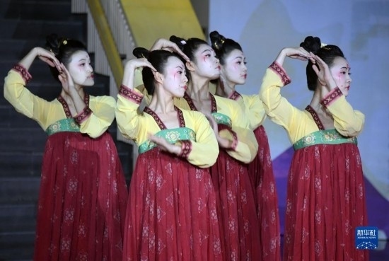 12月4日,在清華大學(xué)藝術(shù)博物館,來(lái)自中央民族大學(xué)舞蹈學(xué)院的學(xué)生表演舞蹈《石榴花開(kāi)》。