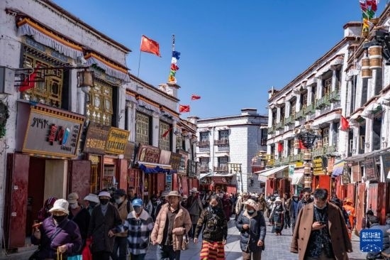 3月14日,拉薩市大昭寺廣場(chǎng)前游人如織。