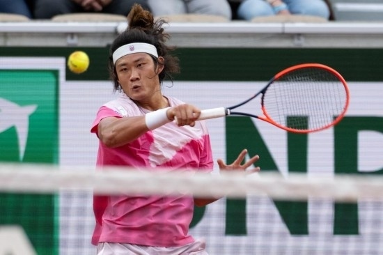 5月31日,張之臻在2024法國網(wǎng)球公開賽男單第三輪比賽中回球。新華社記者 孟鼎博 攝