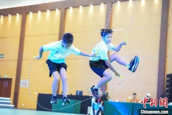 個(gè)人繩、車輪跳、交互繩……第十二屆海峽青年節(jié)·首屆海峽兩岸(福州)青少年跳繩錦標(biāo)賽13日在福州海峽青年交流營地開賽。