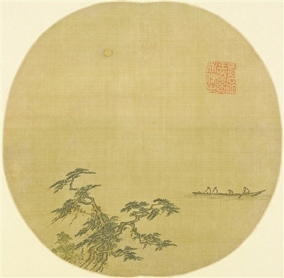 中國畫《松溪泛月圖》,作者南宋夏圭。故宮博物院藏