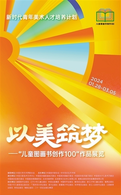 “以美筑夢——‘兒童圖畫書創(chuàng)作一百’作品展覽”海報。
