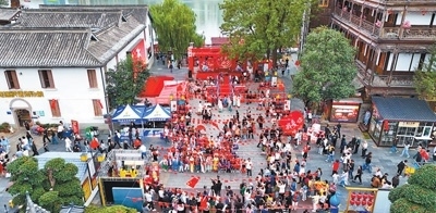 國(guó)慶假期,湖南常德河街舉辦豐富多彩的非遺文化展演活動(dòng),吸引了眾多游客。圖為十月一日拍攝的常德河街。蔡文龍攝(影像中國(guó))