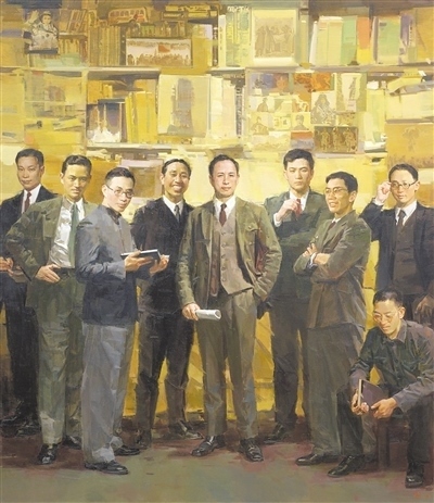 油畫《浙江省三個“一號工程”——改革攻堅》,浙江省油畫院集體創(chuàng)作。