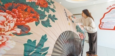工作人員繪制王氏折扇。李曉紅攝(影像中國(guó))
