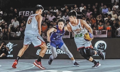 2024國(guó)際籃聯(lián)三人籃球國(guó)家聯(lián)賽(孝感站),選手在比賽中拼搶。王 亮 袁 鑫攝影報(bào)道