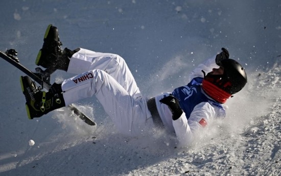 2月9日,李心鵬在落地時發(fā)生失誤。新華社記者 夏一方 攝
