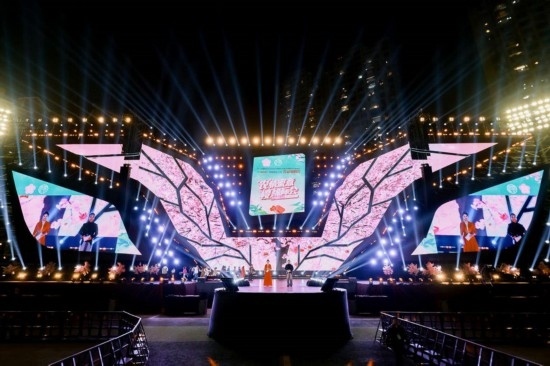 值得一提的是,演唱會(huì)舞臺(tái)的裝扮與漳平市第十四屆櫻花文化旅游節(jié)相互映襯。主舞臺(tái)巨大的和平鴿造型,寓意著海峽兩岸的和平;背景以粉色為主調(diào),點(diǎn)綴著14棵象征本次櫻花節(jié)的櫻花裝飾,營(yíng)造出浪漫唯美的氛圍,也讓觀眾們?cè)谙硎芤魳?lè)的同時(shí),對(duì)即將開展的櫻花節(jié)文化活動(dòng)以及海峽兩岸農(nóng)業(yè)交流大會(huì)充滿期待。