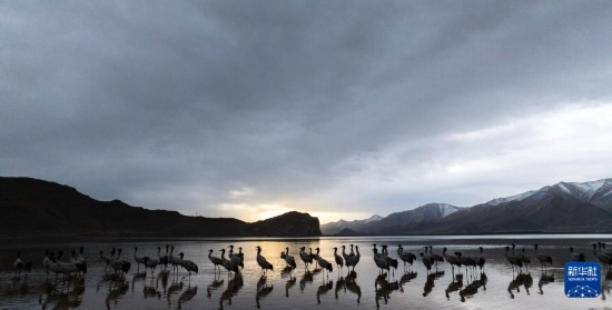 每年冬季,大批黑頸鶴在西藏拉薩市林周縣虎頭山水庫安家越冬。虎頭山水庫周邊的沼澤地、湖泊及河灘為黑頸鶴提供了理想的越冬環(huán)境。