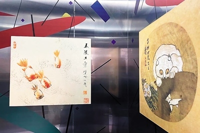 藝術(shù)如何真正進(jìn)入社區(qū)空間,成為居民生活的一部分?“藝術(shù)電梯”計(jì)劃給出了一種城市微更新的可能路徑。2023年,社區(qū)樞紐站與中華藝術(shù)宮(上海美術(shù)館)、上海大學(xué)上海美術(shù)學(xué)院聯(lián)合發(fā)起了“藝術(shù)電梯”計(jì)劃。該計(jì)劃將中華藝術(shù)宮“歷史的星空:二十世紀(jì)前期海派繪畫(huà)研究展”中2件虛谷的作品《白貓》《春波魚(yú)戲圖》融入小區(qū)電梯。