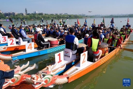 當(dāng)日,2025年“民族團(tuán)結(jié)杯”寧夏端午龍舟邀請(qǐng)賽在銀川市海寶公園舉行。來(lái)自寧夏全區(qū)的19支代表隊(duì)參加比賽,用龍舟賽的方式共度端午假期。