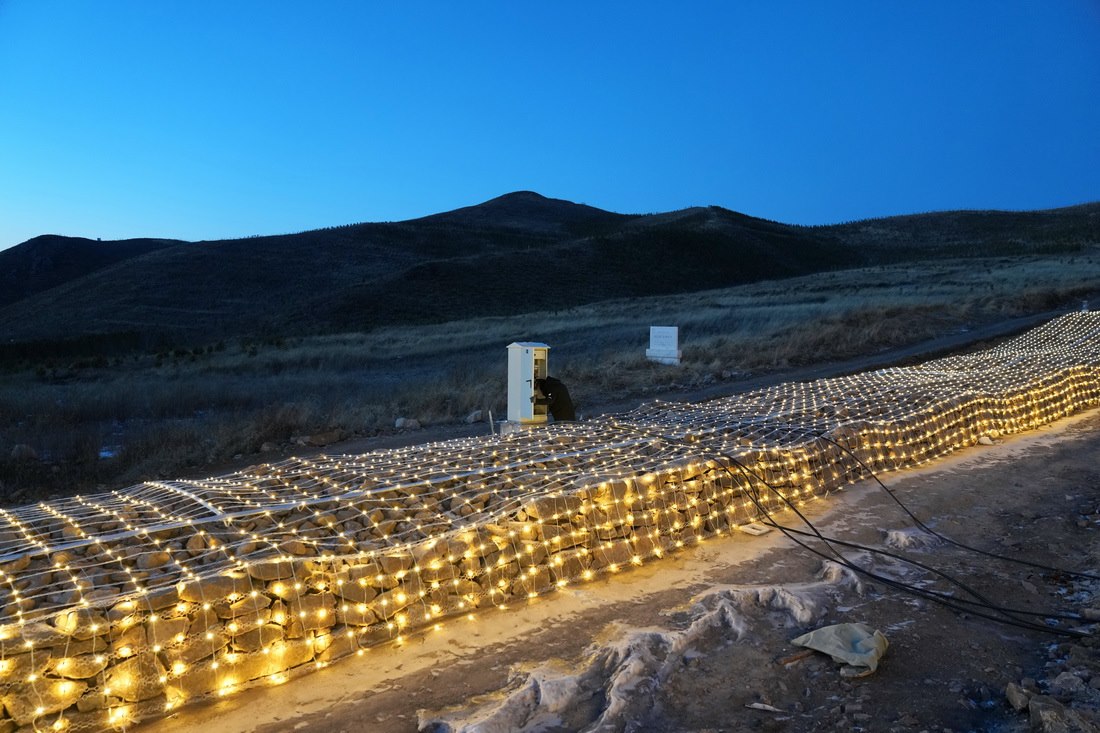 這是崇禮長(zhǎng)城景觀展示亮化工程現(xiàn)場(chǎng)的燈帶(12月30日攝)。新華社記者 楊世堯 攝