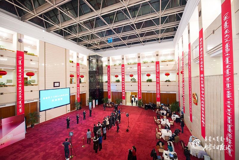 1月27日晚,自治區(qū)十三屆人大四次會(huì)議“代表通道”集中采訪活動(dòng)在內(nèi)蒙古人民會(huì)堂玻璃廳舉行,8位人大代表分兩組“亮相”。這是自治區(qū)人大首次開通“代表通道”。內(nèi)蒙古日?qǐng)?bào)記者 金泉 攝