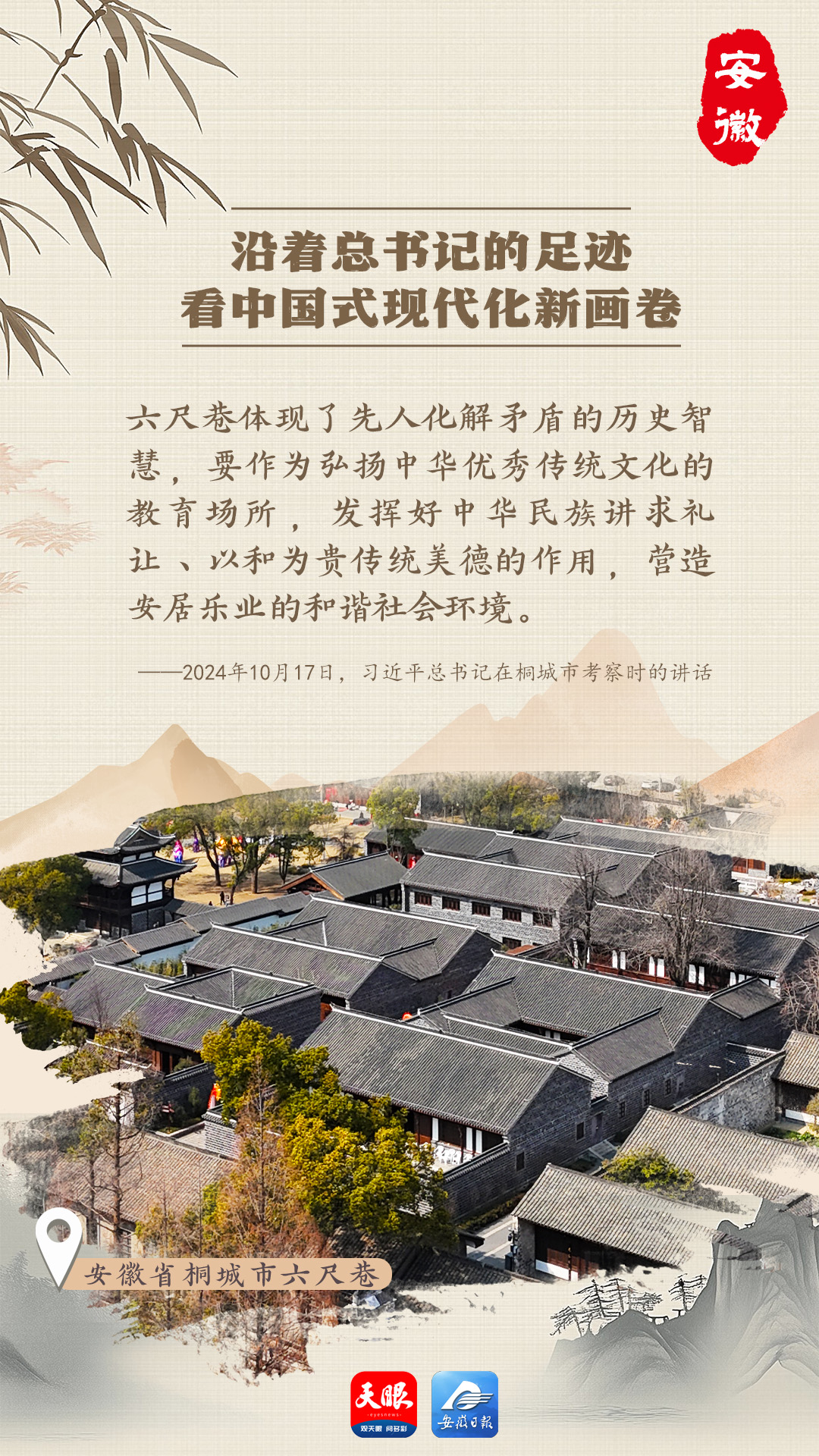在桐城市六尺巷景區(qū),歷史與現(xiàn)代交織成一幅獨(dú)特畫(huà)卷。這里傳承三百多年的“禮讓文化”生生不息,文物在數(shù)字技術(shù)助力下“鮮活”起來(lái)。2024年10月17日,習(xí)近平總書(shū)記親臨桐城市考察并作出重要講話(huà),為當(dāng)?shù)匕l(fā)展注入強(qiáng)大動(dòng)力。