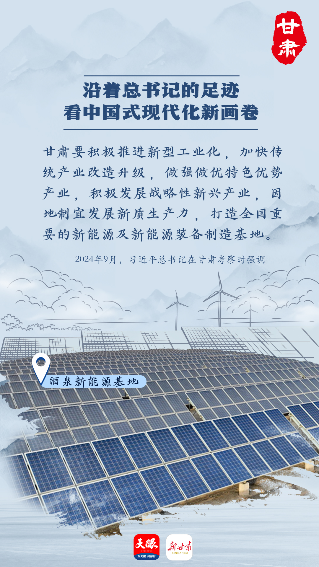 甘肅獲批建設(shè)國(guó)家新能源綜合開(kāi)發(fā)利用示范區(qū),新增新能源裝機(jī)1258萬(wàn)千瓦、總量達(dá)到6437萬(wàn)千瓦,裝機(jī)和發(fā)電量占比均居全國(guó)第2位;新能源及新能源裝備制造業(yè)產(chǎn)值達(dá)到830億元;全省電源總裝機(jī)歷史性突破1億千瓦……如今,甘肅作為全國(guó)重要的新能源和新能源裝備制造基地正在崛起,“風(fēng)光”大省正向“風(fēng)光”強(qiáng)省加速跨越。