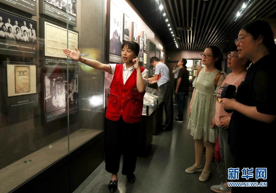 1月20日,“黨的誕生地”志愿服務(wù)隊隊員、上海大學(xué)的學(xué)生在中共一大會址紀(jì)念館為觀眾進行講解(2019年6月22日攝)。新華社記者 劉穎 攝