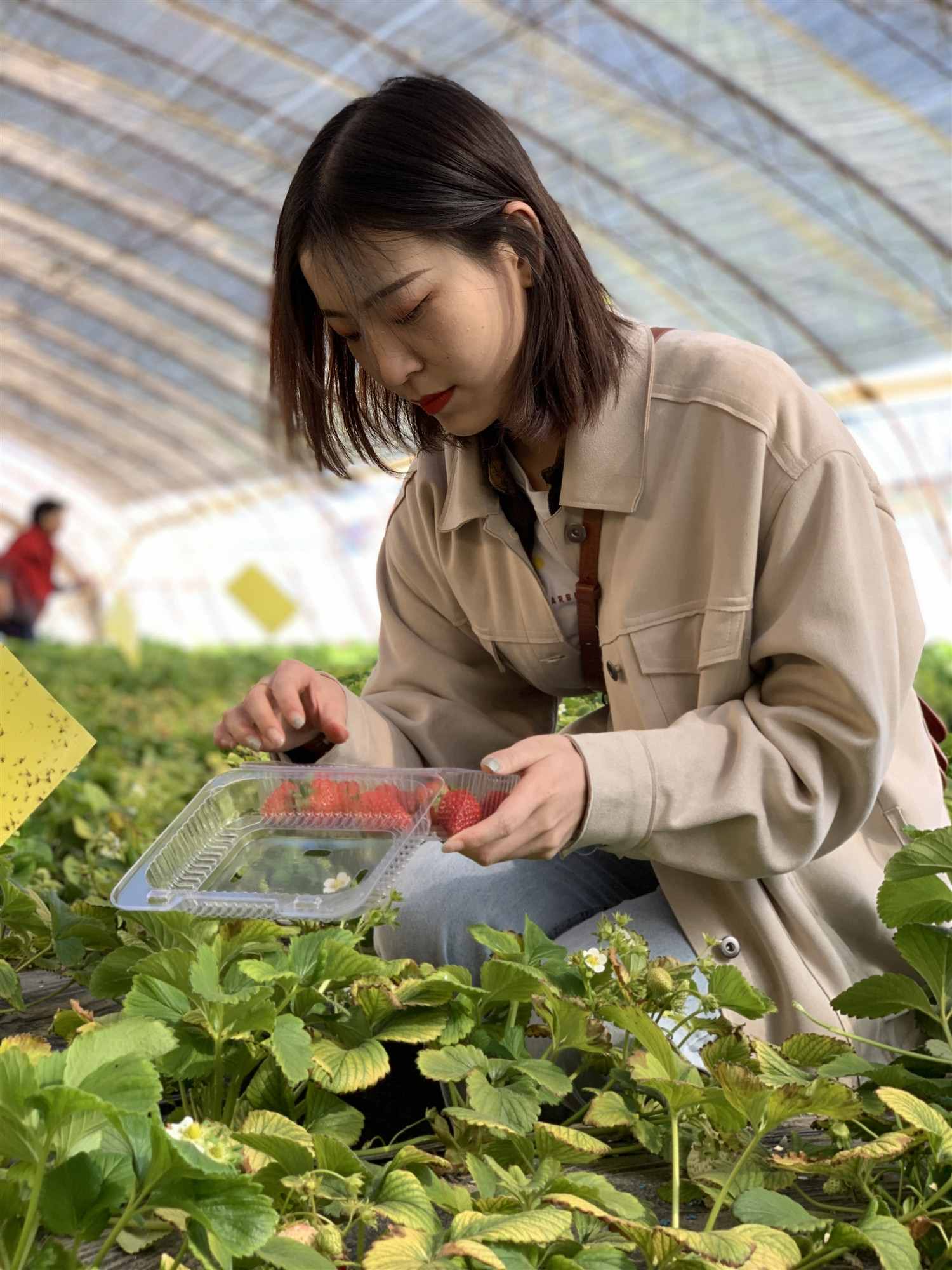 走進(jìn)大棚,棚內(nèi)生機(jī)勃勃,綠意盎然,溫暖的大棚內(nèi),枝蔓交錯的綠葉和鮮紅的草莓相映成趣,與室外一片蕭瑟反差強(qiáng)烈。在這里,還可以帶小朋友認(rèn)識草莓苗、草莓花、草莓葉,看到草莓成熟的不同階段。